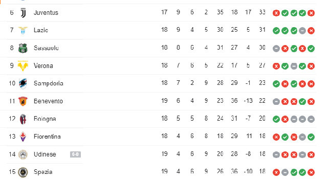 Complete table of serie a standings for the 2020/2021 season, plus access to tables from past seasons and other football leagues.